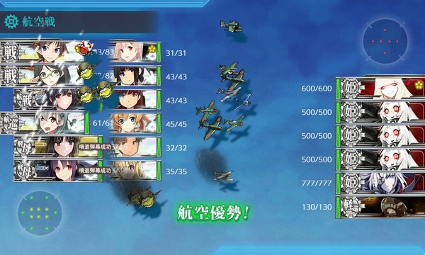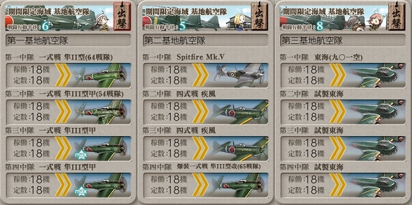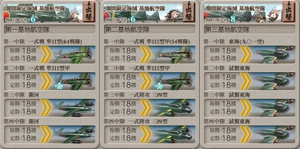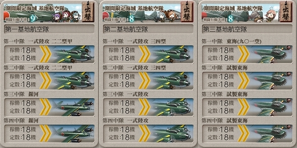 この編成(制空値638)で3マス同時に条件達成を狙います。