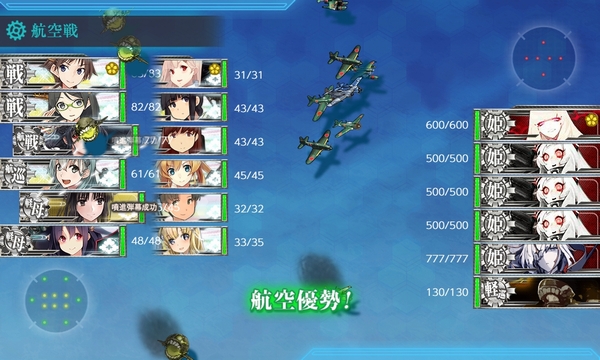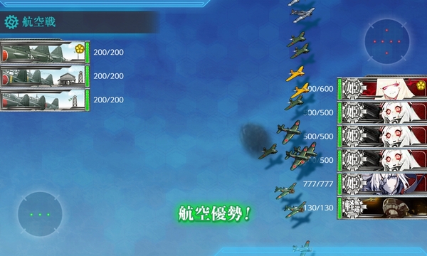 2)水上打撃部隊等でE・H・Mマス(空襲マス)で航空優勢以上を獲得する