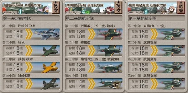 道中支援艦隊はこれまでと同じ艦隊で、基地航空隊は