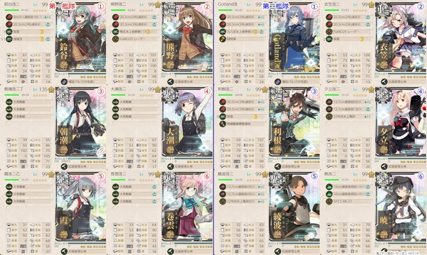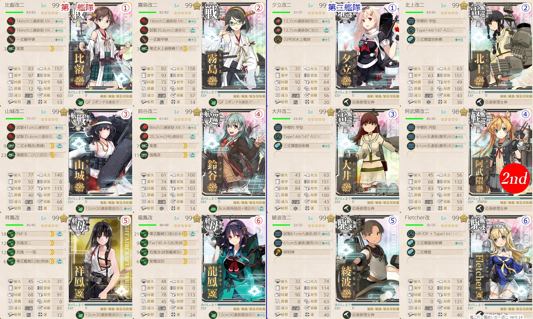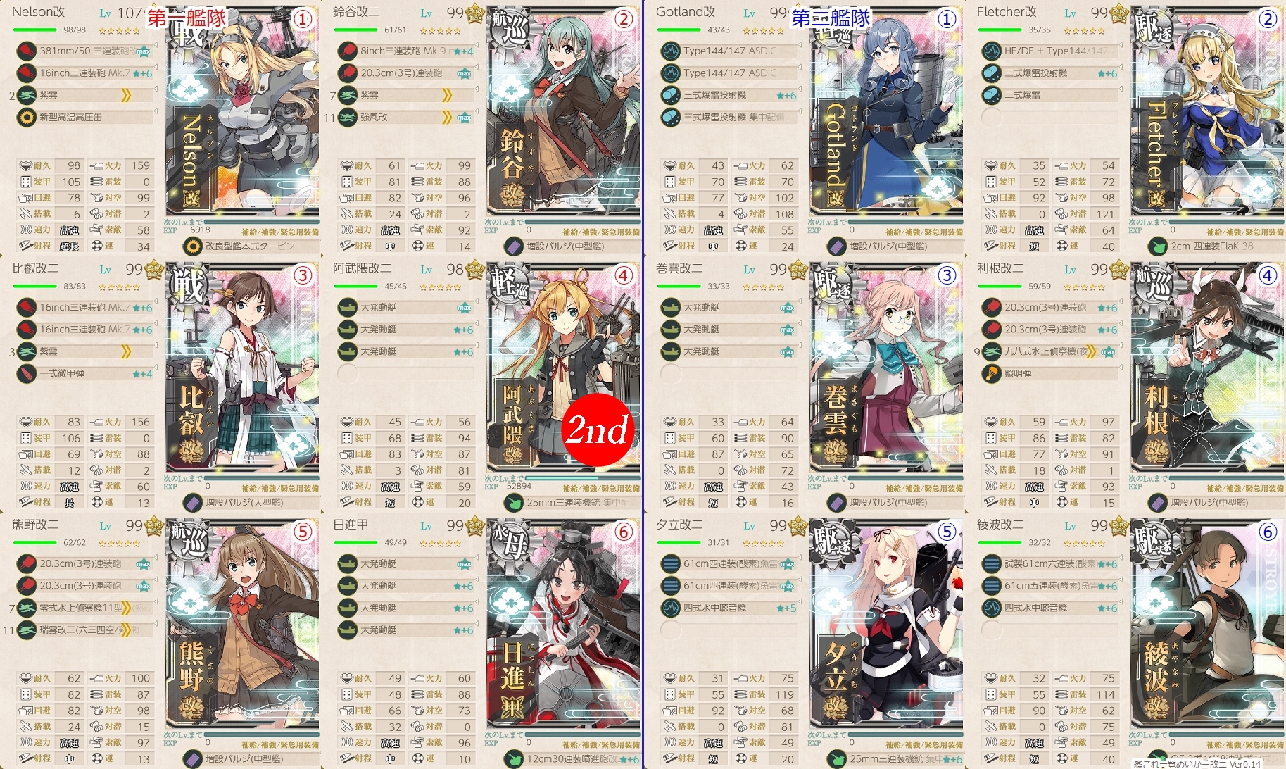 また、第二艦隊に対潜装備搭載艦を3人配置しましたが、これだと道中は安定する