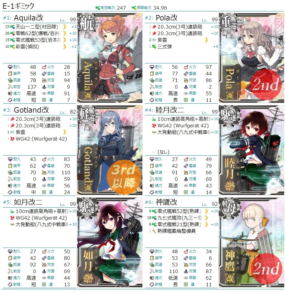 通常艦隊6隻中3隻の2nd艦を投入することにしました。